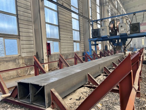 :將翼板和隔板以U型組裝的形式使用組焊一體機(jī)進(jìn)行焊接固定,使得整個(gè)箱型柱具備可靠的穩(wěn)定性。在組裝完成后,需要將箱型柱翻轉(zhuǎn),然后手工進(jìn)行隔板的焊接。這是箱型柱加工流程中的一個(gè)重要步驟,確保隔板與箱體的連接牢固。