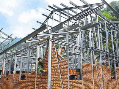 4、鋼結(jié)構(gòu)房屋節(jié)能的保溫隔音結(jié)構(gòu)設計 100mm厚度的玻璃棉保溫層,其保溫性能相當于1m厚度的磚墻,實驗證明,該結(jié)構(gòu)體系外墻導熱系數(shù)僅為0.46。輕鋼結(jié)構(gòu)復合墻體的隔音性能可達到50dB以上,優(yōu)良的保溫隔音性能,不僅為我們提供了一個健康的居住環(huán)境,而且與鋼筋混凝土結(jié)構(gòu)比較,節(jié)能達30%~50%,經(jīng)濟環(huán)保。