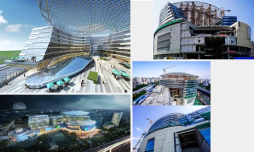 項(xiàng)目緊鄰蘋果園交通樞紐,共分三期建造施工,一期、二期兩棟配樓樓外墻面和玻璃幕墻都已經(jīng)安裝完畢,三期部分結(jié)構(gòu)封頂,剩余部分正抓緊時(shí)間趕工,建筑面積20余萬(wàn)平方米,占地面積55000平米。