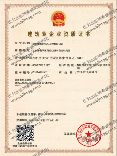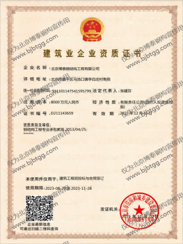 北京博泰公司資質(zhì)-北京博泰鋼結(jié)構(gòu)工程有限公司